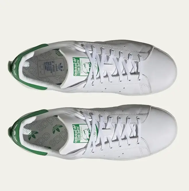 깔끔한 룩을 좋아하는 사람들이 가장 많이 신는 신발. 스탠스미스 (https://tinyurl.com/4ebxs3yw)입니다. 1980년대 ‘전 세계에서 가장 많이 팔린 신발’로 기네스북에 등재된 제품이죠. 흰색과 녹색의 컬러 조합이 대표적인 모델입니다.
