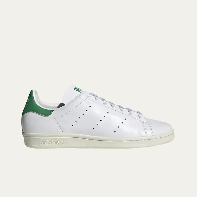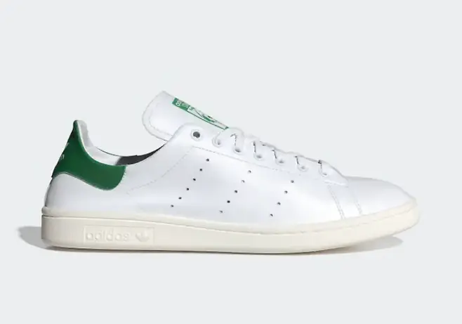 깔끔한 룩을 좋아하는 사람들이 가장 많이 신는 신발. 스탠스미스 (https://tinyurl.com/4ebxs3yw)입니다. 1980년대 ‘전 세계에서 가장 많이 팔린 신발’로 기네스북에 등재된 제품이죠. 흰색과 녹색의 컬러 조합이 대표적인 모델입니다.