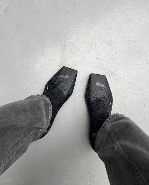 미래적이고 조형적인 디자인을 전개하는 여성 브랜드 코페르니는 2024 봄/여름 컬렉션에서 푸마와 협업한 스니커즈 ‘90SQR’를 선보였다. 푸마의 축구화 ‘퓨처’에서 영감을 받은 것으로 스퀘어 토와 플랫한 실루엣이 특징이다. 옐로, 블랙, 화이트 3가지 컬러로 지난달 22일 출시됐으며 발매가는 48만원이다.