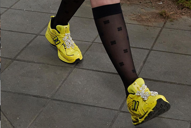 낭만적이고 개성 넘치는 디자인을 선보이는 덴마크 패션 브랜드 가니는 2024 봄/여름 컬렉션에서 뉴발란스와 협업한 귀여운 스니커즈를 선보였다. 2000년대 뉴발란스의 하이테크 러닝슈즈인 1906R에 트렌디한 컬러를 가미해 세련되게 재해석했다. 지난해 9월 출시됐으며 발매가는 27만 9000원이다.