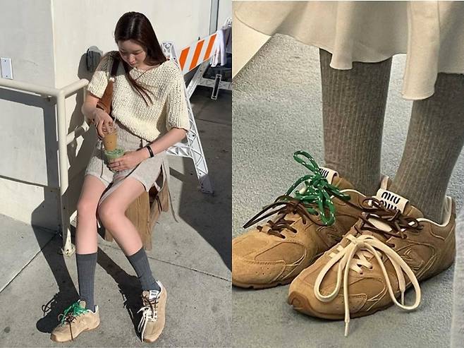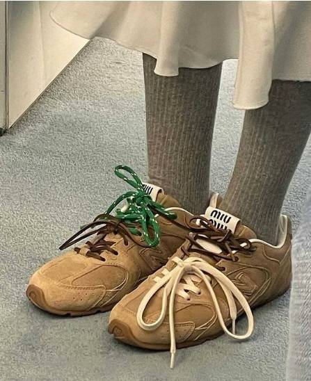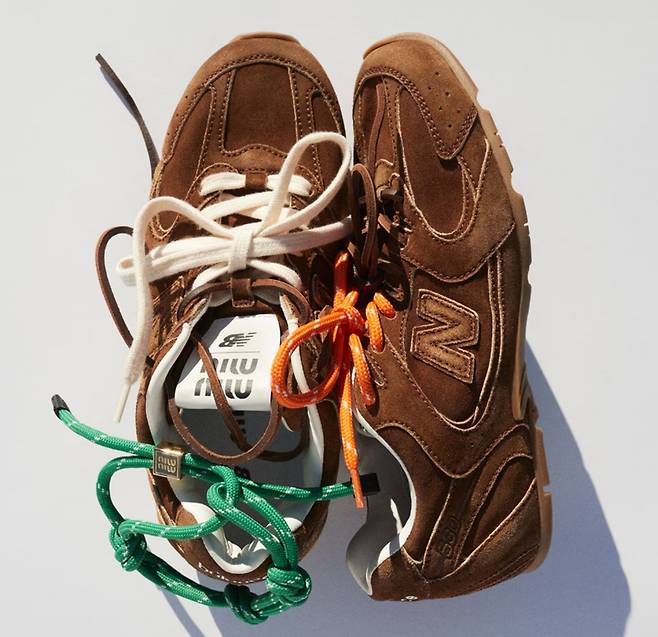 2022년 봄/여름 컬렉션에서 뉴발란스 574를 재해석한 스니커즈를 선보였던 미우미우가 이번 시즌에는 뉴발란스 530으로 돌아왔다. 텅에는 미우미우 로고를 넣었으며 기존 530 모델보다 훨씬 낮은 아웃솔을 차용해 차별화했다. 어두운 황갈색과 샌드 컬러 두 가지로 신발 끈을 위아래로 각기 다르게 묶을 수 있게 했다. 오는 22일 미우미우 공식 홈페이지에 공개될 예정으로 가격은 알려지지 않았다.