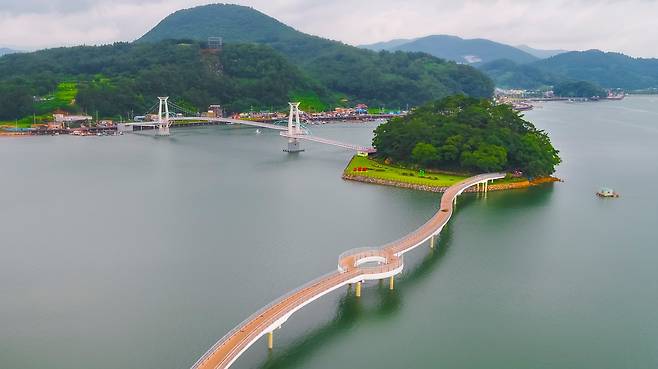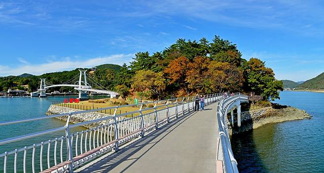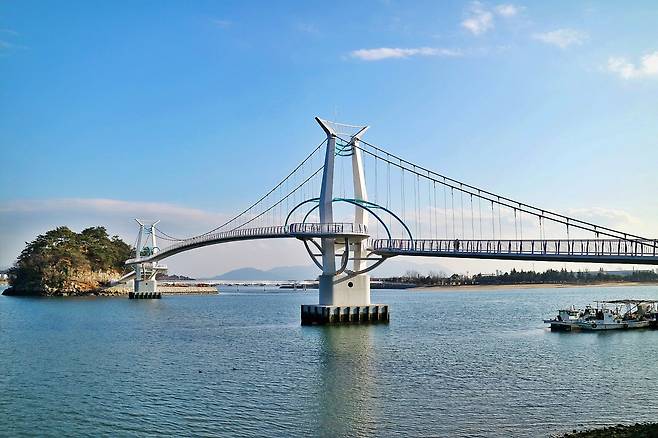 배알도는 별헤는다리와 해맞이다리, 두 개의 해상보도교로 육지와 연결돼 있다. 다리 위를 걸을 때는 강과 바다가 동시에 시야에 들어오고, 발아래로 흐르는 물결 덕분에 걷는 시간이 지루하지 않다.