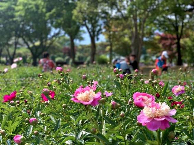 모란은 4월 말에, 작약은 5월에 핀다. 그렇기에 5월 초즈음에 방문하면 두 꽃이 동시에 정원을 물들이는 풍경을 볼 수 있다.