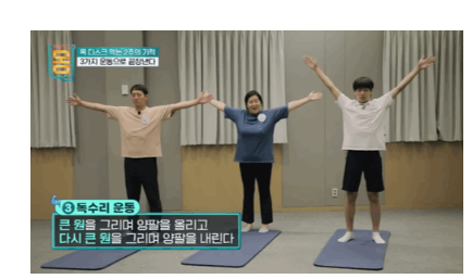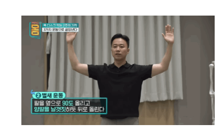 천천히 팔을 올렸다 내렸다 반복 (날개짓처럼)