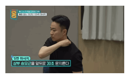 양쪽 어깨뼈를 뒤로 모아 5초 유지 후 이완