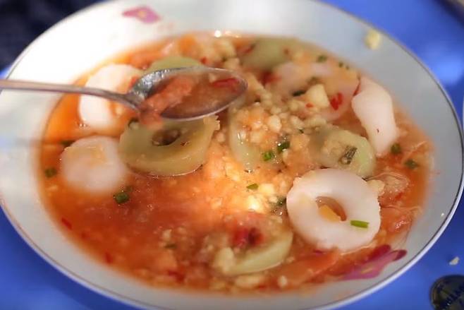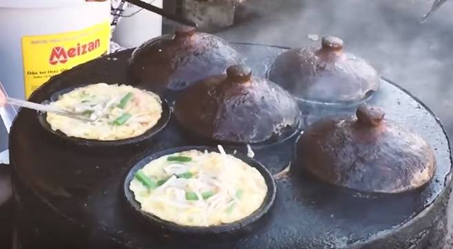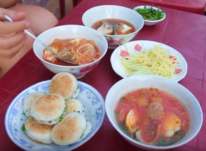 캔 케이크는 베트남 중부(나트랑, 달랏, 판티엣)에서 인기 있는 전통 케이크입니다. 케이크는 쌀가루로 만들어지며 그 위에 메추리알, 다진 파, 오징어(또는 새우)를 얹습니다.