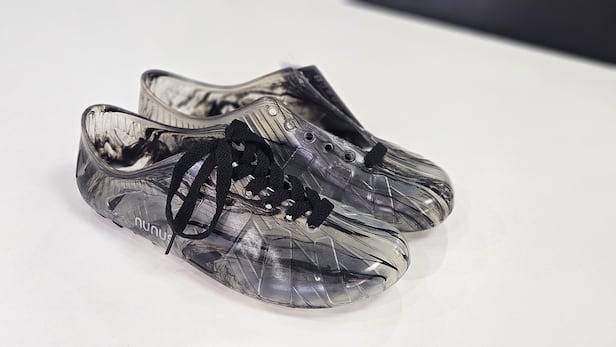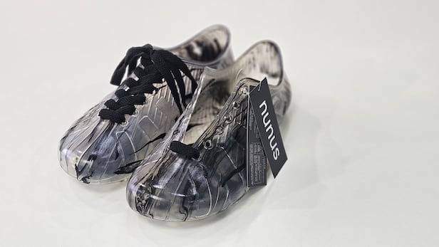 누누스 맨발 워킹슈즈는 운동화 형태의 얇은 고무 신발입니다. 음전하의 이동을 원활하게 하기 위해 전도성 고무를 사용했죠. 맨발 걷기에 최대한 근사한 효과를 낼 수 있는 신발입니다.