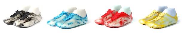 블랙, 블루, 레드, 옐로우 등 4가지 색상이 있습니다. 투명한 바탕에 색상별로 자연스러운 무늬가 더해져 있습니다. 운동화처럼 발등 부분을 덮는 끈도 있죠. 색상을 먼저 고른 뒤 사이즈를 선택하면 됩니다.