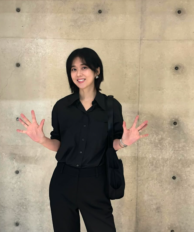 장나라는 블랙 슬랙스와 셔츠, 숄더백을 매치한 단정하고 깔끔한 올블랙룩을 선보였다. 세련된 무드와 함께 일상에서도 활용하기 좋은 스타일링으로, 그녀의 우아한 이미지를 더욱 돋보이게 했다.