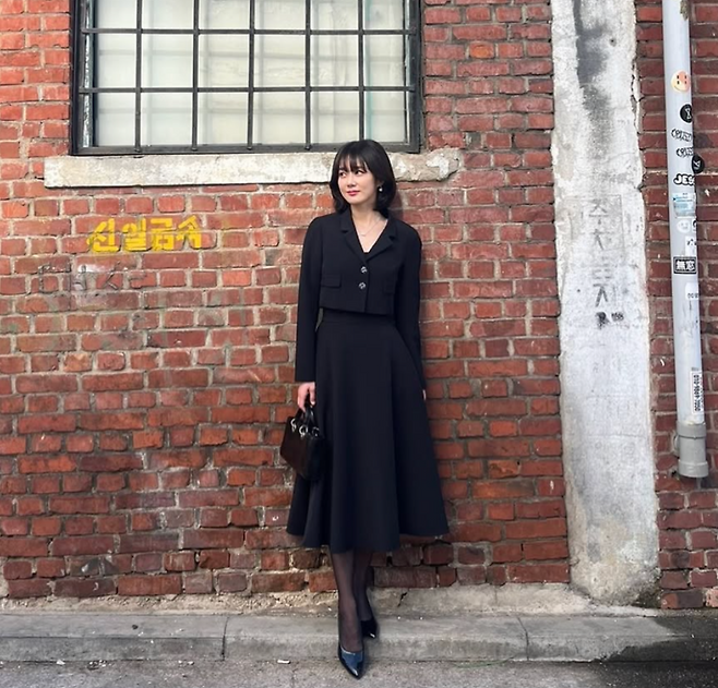 블랙 트위드 재킷과 롱스커트 셋업, 디올 도트백을 매치하여 고급스러운 무드를 자아냈다. 우아한 여배우의 미모와 함께 격식 있는 자리에서도 어울리는 스타일링으로 눈길을 끌었다.