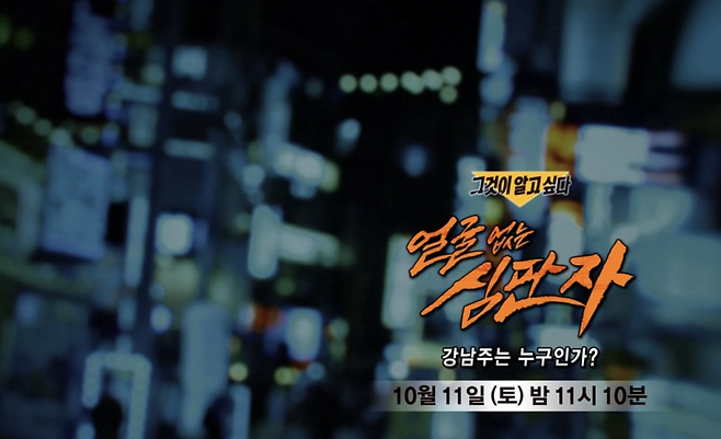 SBS 시사교양 프로그램 ‘그것이 알고 싶다’가 강남 유흥업계에서 이름을 떨치고 있는 정체불명의 인물 ‘강남주’를 본격 추적합니다. 이번 방송은 1461회로, ‘얼굴 없는 심판자-강남주는 누구인가’라는 부제를 달고, SNS 상에서 수많은 사람들의 신상 정보를 공개하며 파장을 일으킨 계정의 실체를 파헤칩니다.