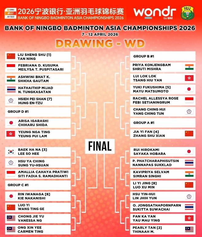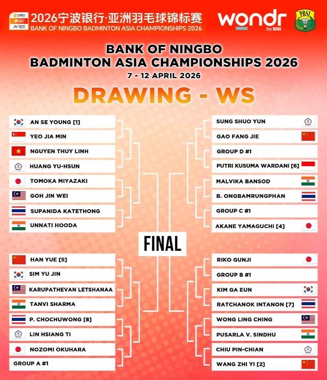 배드민턴 전문매체 '인도네시아 배드민턴'은 6일(한국시간) 사회관계망서비스(SNS)를 통해 2026 아시아개인배드민턴선수권대회 대진표를 공개했다.