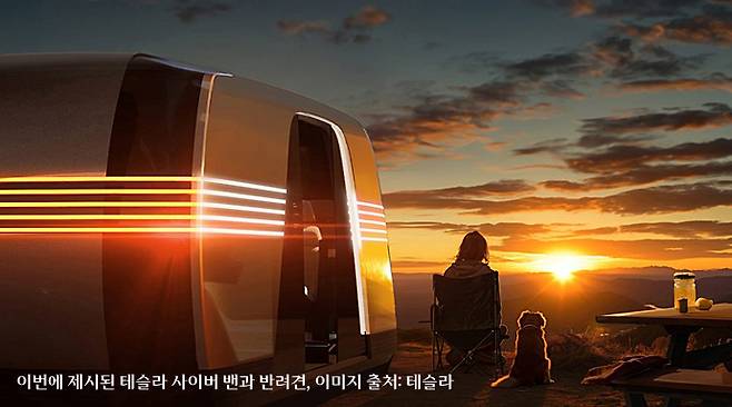놀랍게도 테슬라는 반려견과 함께 캠핑 중인 사이버 밴의 이미지도 제시하고 있습니다. 이건 마치 1921년에 제시된 축음기를 들여다보는 반려견 니퍼의 그림이 생각나는 것이기도 합니다. 100년 사이의 기술 변화가 이런 걸까요? 그래서 다음 글에서는 디지털 기술로 무장한 테슬라의 사이버 캡과 사이버 밴의 디자인에서 디지털과 아날로그의 요소가 있는지에 관해 살펴보도록 하겠습니다.