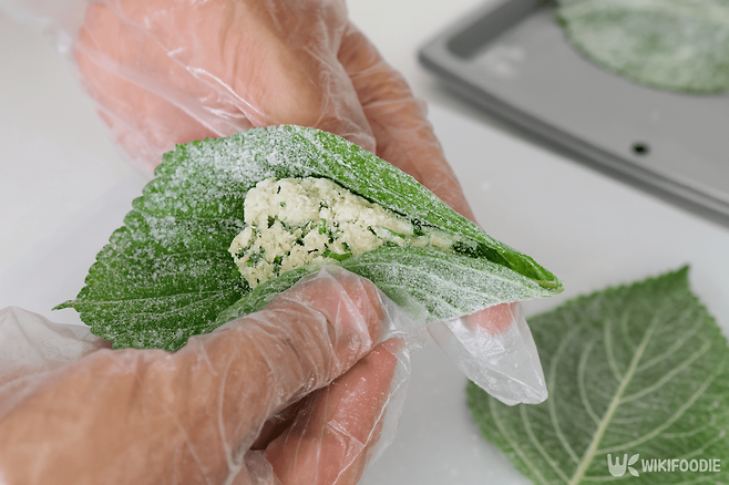 깻잎을 접어 모양을 만든다