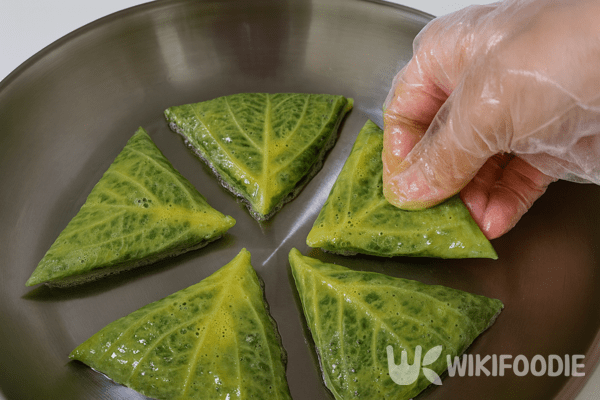 속 재료가 준비되면 깻잎 위에 올려 접는 과정을 거친다. 깻잎 앞뒤에 부침가루나 밀가루를 얇게 묻혀야 속이 잘 고정된다. 잎 위에 속을 올리고 오른쪽, 왼쪽을 차례로 접은 뒤 아래쪽을 위로 올려 삼각형 모양으로 접는다. 이 과정이 깻잎전의 완성도를 결정한다. 모양이 잘 잡혀야 부칠 때 속이 터지지 않고 단정하다. 접은 전은 계란 2개를 풀어 만든 계란물에 충분히 담가 옷을 입힌다.