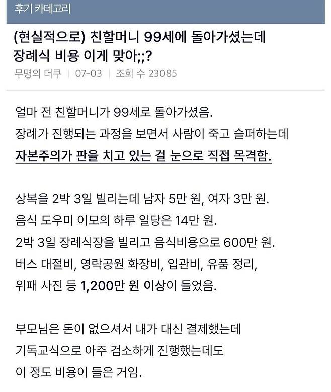 우리나라 문화 특성 상 결혼식이나 장례식은 돈 안아끼는것같더라고요