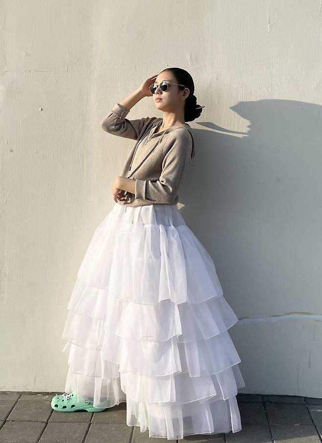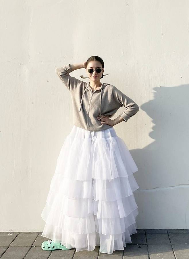 공개한 사진에서 안은진은 풍성한 화이트 페티코트에 베이지색 니트 집업 카디건을 입고 파스텔 컬러가 돋보이는 크럭스 슈즈를 신은 남다른 패션 센스로 눈길을 사로잡았다.