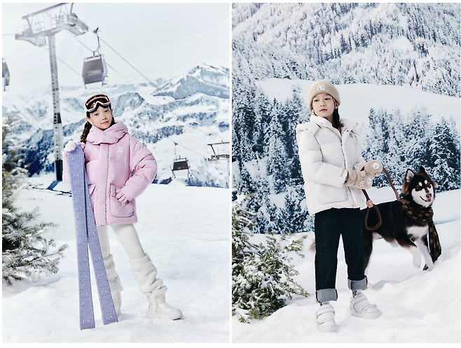 몽클레어키즈 패딩을 입은 아이들의 코디에서