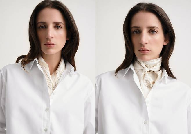 나는 ‘노티드 모노그램 실크 스카프’를 추천한다. 토템에서 가장 저렴한 의류도 50만 원대인데에 이 스카프는 28만 원으로 비교적 괜찮은 가격이다. 로고를 비틀고 매듭 지어놓은 듯한 패턴이 특징이다. 진짜 스카프를 묶었을 때 프린팅 된 매듭이 살짝 보이면서 더욱 매력적으로 느껴질 것이다. 57cm x 57cm 사이즈의 작은 정사각형 형태라 어떻게 접느냐에 따라 다양한 연출을 할 수 있다는 것이 장점. 이런 사이즈의 스카프는 목에만 메는 것이 아니라 머리끈처럼 활용하거나 가방에 살짝 묶어줘도 예쁘다. 구매는 여기(https://bit.ly/48b2Edw).