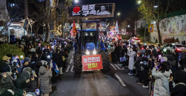 옛날 동학농민군은 우금치를 넘지 못하고 패배했지만, '농민-시민 연합군'은 우금치에서 남태령을 넘어 용산까지 입성했다. 동학농민의 한을 푼 것 같아 가슴이 한없이 뭉클해졌다. 8년전 농민들이 박근혜 탄핵을 위해 트랙터 시위를 했을 때에는 서울로 입성하는 것에 실패했었다. 이번에는 수많은 시민들이 강추위 속에서도 벌벌 떨면서 농민들을 지켜준 덕에 8년 전에 뚫지 못했던 벽을 처음으로 넘어선 것이다. 이것이 K-민주시민들의 파워가 아니겠는가?