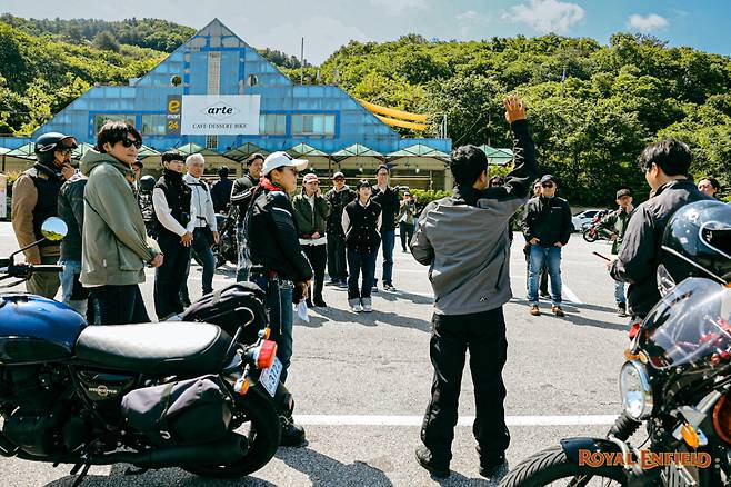이른 아침부터 양평에 있는 아르떼파인에서 엔필더들이 모여태백으로 이동을 했는데 날씨가 좋아서인지 이른 아침부터 양평으로 빠져나가는 도로에 모터사이클이 무척 많았다. 아르떼파인에서 만난 이번 행사에 참가하는 엔필더들은 서로 반가운 인사를 나누며 태백까지 이동할 준비를 했는데, 로얄엔필드가 여러 가지 장르를 만드는 브랜드이니 만큼 몇 명이 모여도 모델들이 다양했고 그래서 그런지 엔필더 들의 복장들도 각양각색 이었다. 처음 보는 잘 모르는 사이라도 해도 같은 메이커의 모터사이클을 탄다는 이유만으로 어색함을 금방 사라지고 또 금세 가까워지는데, 같이 달리고 같이 멈추고 또 밥도 같이 먹다 보면 금방 친해지기 마련이다.