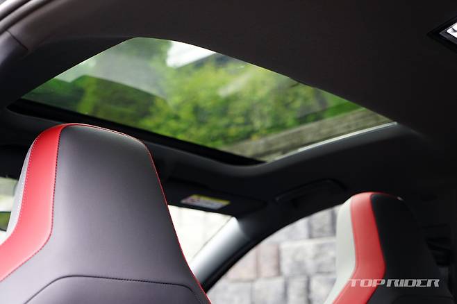 운전석 시트포지션은 이상적이다. 오랜만에 경험하는 낮은 포지션이지만, 전측방 시야가 아주 우수하다. 스포츠시트는 좌우 움직임을 견고하게 잡아주지만, 방석부 쿠셔닝은 부드럽다. 일상주행까지 고려한 설계다. 스티어링 휠 터치 버튼은 부분변경을 거치며 물리 버튼으로 돌아왔다.