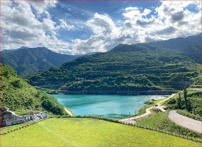‘무릉별유천지’라는 이름은 무릉계곡 암각문에서 유래한 말로,**‘하늘 아래 경치가 가장 좋은 유토피아 같은 곳’**이라는 의미를 담고 있습니다.그 의미를 실감하게 해주는 건 바로 두 개의 호수,**청옥호(靑玉湖)**와 **금곡호(錦谷湖)**입니다.