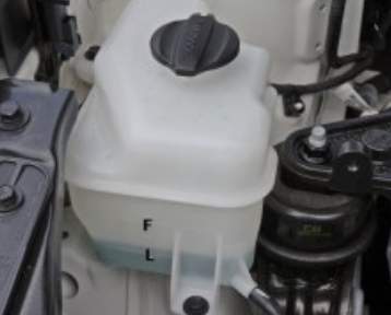 방법: 반투명한 플라스틱 '보조 냉각수 탱크'의 옆면을 보세요. 냉각수가 F(MAX)와 L(MIN) 선 사이에 있는지 확인하면 됩니다.