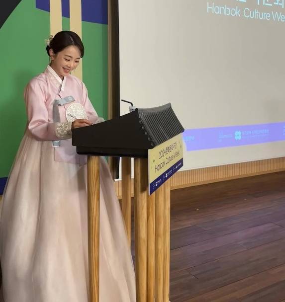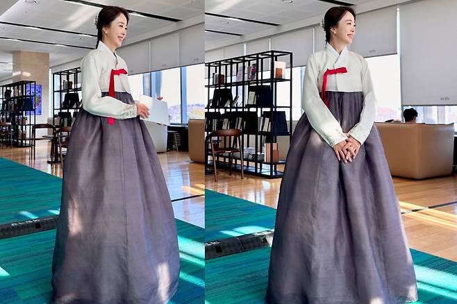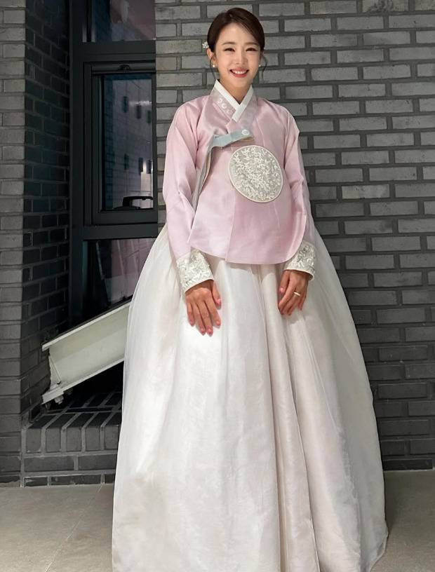 임신 발표에 앞서 박은영은 한복으로 눈길을 끌었다.
