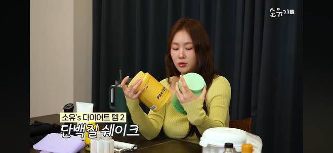 특히 단백질 쉐이크는 소유가 하루 한 번 이상 챙겨 먹는 다이어트템 중 하나다.