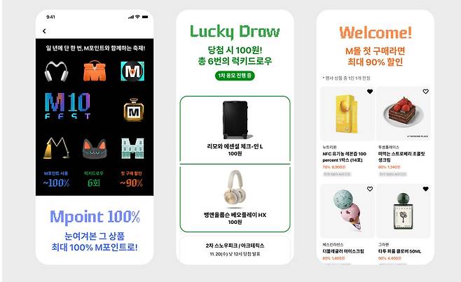 현대카드 M몰 ‘M100 페스타’에 대한 자세한 사항은 M몰 앱과 현대카드 앱에서 확인할 수 있다.