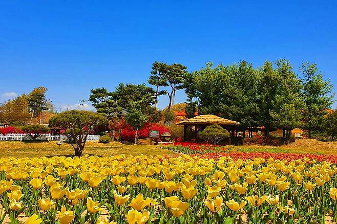 따뜻한 햇살 아래에서 피어난 튤립과 영산홍, 팬지, 데이지 등이 공원 전체를 화사하게 채우며 방문객들의 발걸음을 이끌고 있습니다.