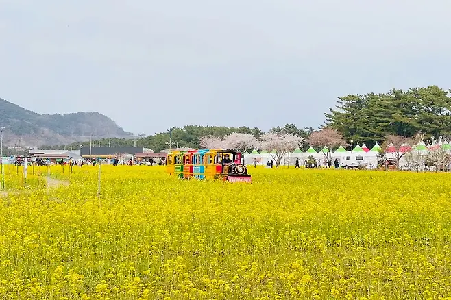 유채꽃밭만 있는 것은 아니다. 축제장에는 다양한 체험 부스와 간이 먹거리장터도 함께 운영된다. 네일아트, 페이스페인팅, 샌드아트 체험은 아이들에게 인기가 많으며, 딸기청 만들기와 같은 간단한 먹거리 체험도 제공돼 가족 단위 방문객의 만족도가 높다.