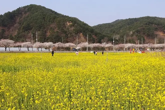 삼척시 근덕면 상맹방리 일대에서 열리는 삼척맹방유채꽃축제는 약 5.5헥타르 규모의 꽃밭 위로 펼쳐진 노란 유채꽃과 연분홍 벚꽃이 동시에 절정을 이루며 봄의 진수를 보여준다.