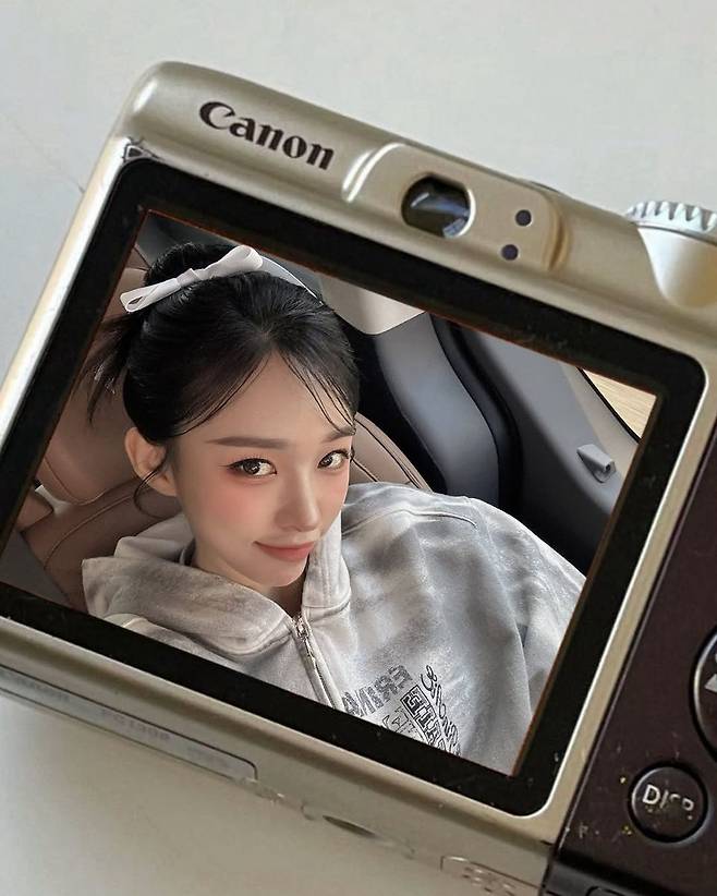 두 번째 컷에서는 후드 집업을 입고 차 안에서 셀피를 찍은 한초임의 내추럴한 모습이 눈에 띈다. 밝은 실버그레이 계열의 후드와 리본 머리끈 조합은 꾸안꾸 스타일링의 정석으로, 편안하면서도 러블리한 분위기를 잃지 않는다. 헤어는 자연스러운 반묶음으로 연출했고, 군더더기 없는 메이크업이 전체적인 분위기를 깔끔하게 정리해준다.