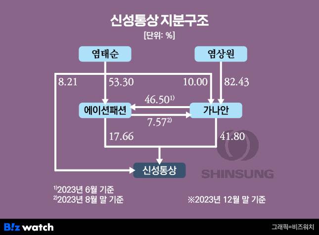 가나안은 올해 들어 다섯 차례에 걸쳐 신성통상의 주식 43만5000주를 매수했다. 염 회장의 장남 염상원 이사가 가나안 지분 대부분을 보유하고 있는 만큼 그가 신성통상에 대한 지배력을 확대하고 있는 것으로 볼 수 있다.