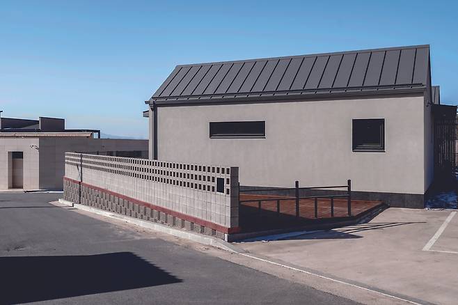 ‘마중집’은 연면적 40평대의 경랑 목구조 단층주택이다. 직장생활을 하는 건축주 부부는 방학 이 되면 집에 머무르는 대학생 자녀들과 함께 거주할 공간이라서 관리가 편한 형태로 지어지길 희망했다.