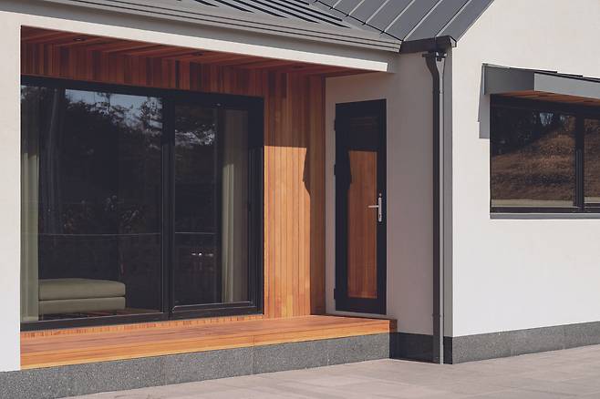 건축주는 전체적으로 휴식을 위한 집을 원했고, 추가적으로 편하게 앉아서 쉴 수 있는 툇마루를 요청했다. 고민 끝에 시골집의 정겨운 툇마루 느낌을 살리고자 내구성을 자랑하면서 우드 분위기를 함께 느낄 수 있는 적삼목을 마감재로 선택했다. 처마를 길게 빼 강한 햇빛이나 갑작스러운 날씨에도 대비할 수 있는 실용성 있는 툇마루를 계획했다.