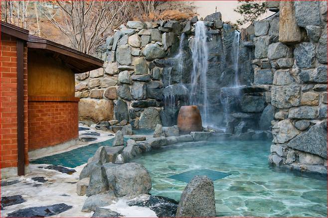 팔공산 온천은 두 개의 온천공에서 뿜어져 나오는 서로 다른 매력의 온천수를 조화롭게 사용합니다.