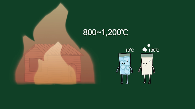 화재가 발생하면 온도가 점차 오르기 시작해 800~1,200℃까지 오르고, 다 태운 후에 자연 소화하는데, 이 과정에서 온도가 10℃인 물이나 100℃인 물이나 큰 차이가 없으므로 상관없다는 겁니다.