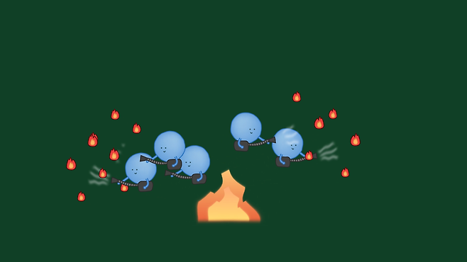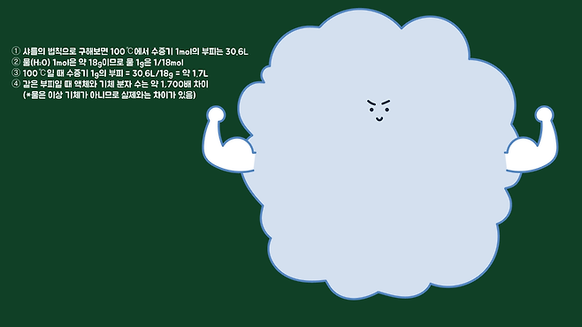 어쨌든 앞서 소화기가 없을 때 물을 사용한다고 했으니 물로 어떻게 화재 진압을 할 수 있는지 알아보겠습니다. 물을 끓이면 수증기가 발생합니다. 마찬가지로 불에다가 물을 뿌리면 열기에 의해 물은 기화할 겁니다.