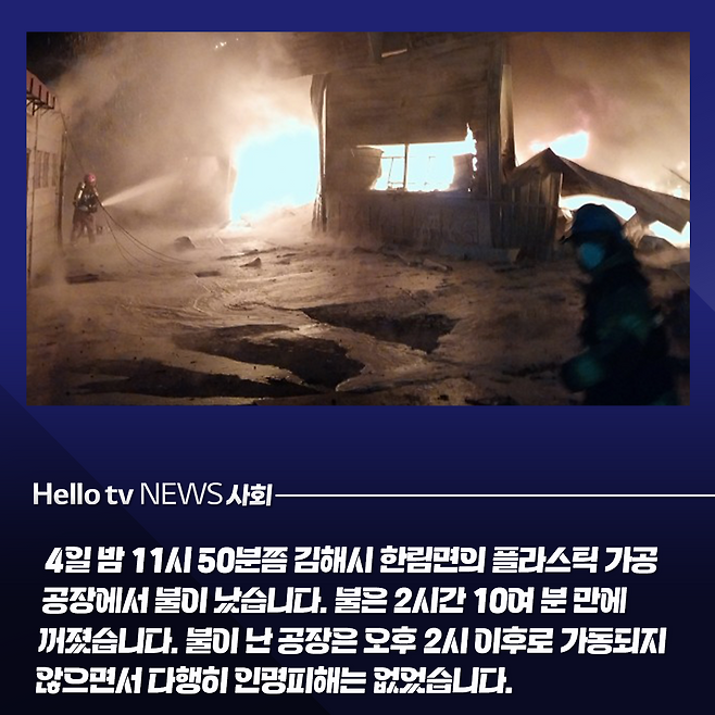 김해 한림면 플라스틱 가공 공장서 불…1억 7천만 원 재산피해