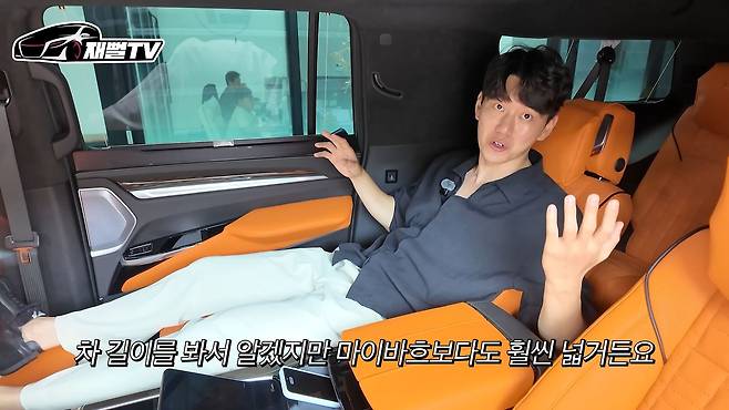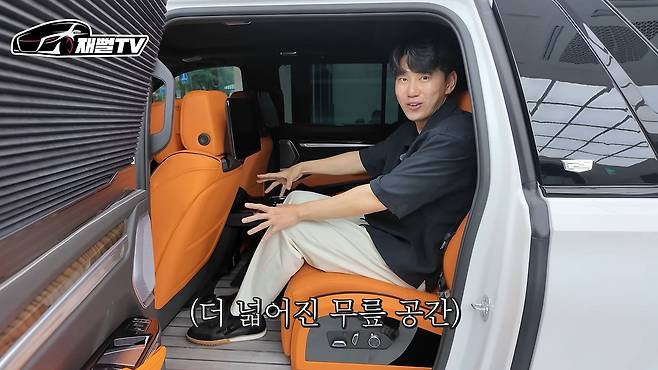 이 차량은 2열을 의전 차량으로 만들면서도 3열 공간을 전혀 포기하지 않았다는 점이 놀랍습니다. 3열의 무릎 공간도 성인이 편안하게 탑승할 수 있을 정도로 여유롭습니다. 이는 2열 시트가 뒤로 20cm 당겨진 덕분에 가능한 일이었습니다.