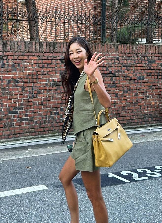 가수 윤종신의 아내이자 전 테니스 국가대표 전미라가 쇼츠와 베스트 셋업의 쿨한 하객룩을 선보였다.