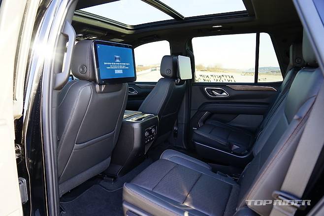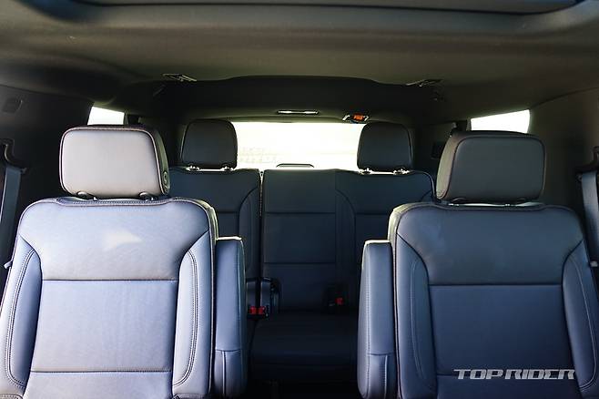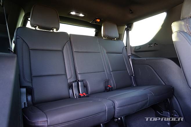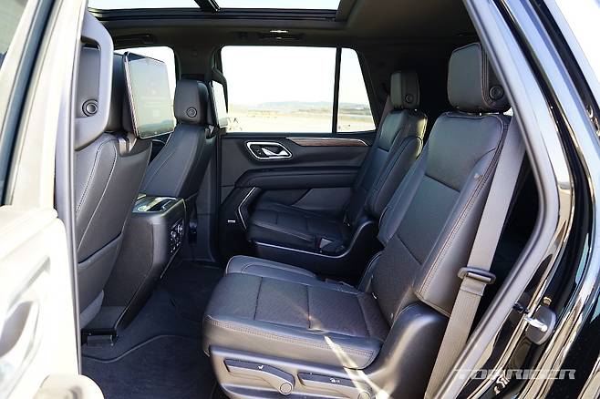 가족 여행을 고려한다면 타호의 2열과 3열은 공간과 안락함에서 좋은 점수를 줄 수 있다. 신규 플랫폼이 적용되며 3열 시트가 낮아지고, 트렁크 공간을 추가로 확보했다. 타호의 3열은 비상용 공간이 아닌 성인이 이용할 수 있는 수준이다. 3열 사용시에도 트렁크가 확보된다.