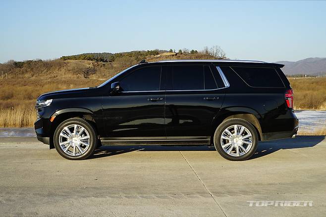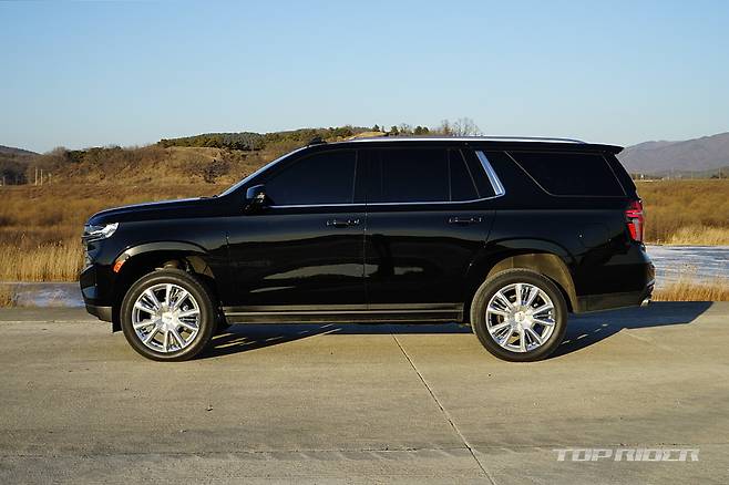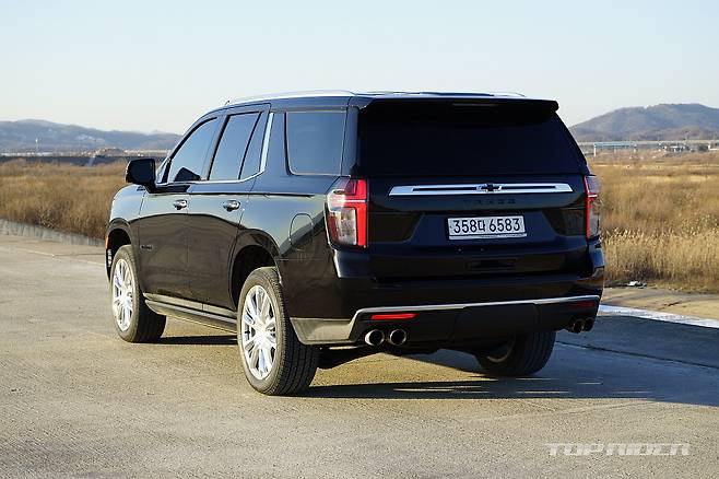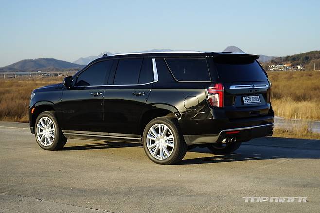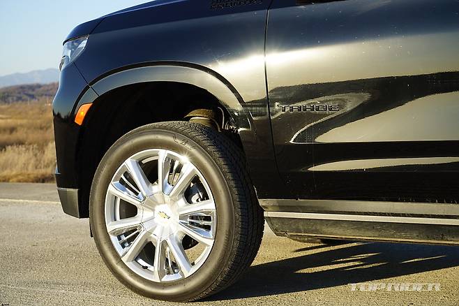 타호는 전장 5350mm, 전폭 2060mm, 전고 1925mm, 휠베이스 3071mm의 차체를 자랑한다. 오래된 주차장을 주로 이용한다면 내리기 어려울 수 있는 크기다. 도시 외곽 주행에서는 도로 밖 풍경을 언제나 즐길 수 있는데, 높은 전고로 인해 시선이 가드레일 위에 머문다.