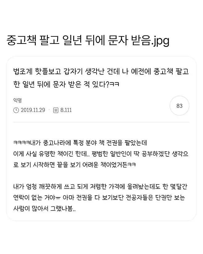 중고책 팔고 일년 뒤에 문자 받음ㅋㅋ