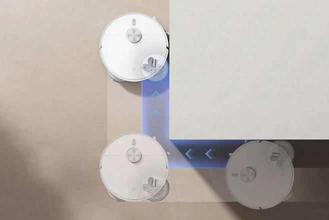 두 번째 개선점은 벽 모서리나 틈새까지 빈틈 없이 청소하는 기계식 암을 탑재해 청소 사각지대를 없앴다. LG전자와 삼성전자 제품에도 없는 모서리 청소 기능인데 50만 원 밖에 하지 않는 샤오미 제품에 들어갔다. 분당 180회 회전하는 물걸레는 고온 세척과 열풍 건조를 통해 위생적으로 관리되며, 브러시에는 커터가 탑재되어 긴 머리카락은 엉키지 않도록 작게 잘라서 흡입한다. 흡입력은 7,300Pa로 준수하다.
