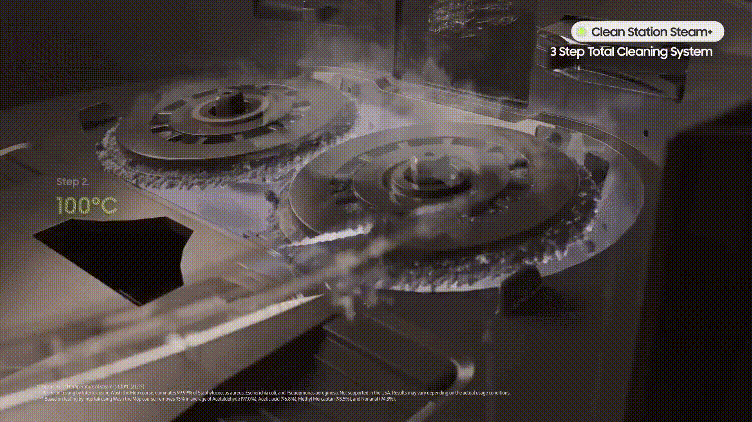 제품이 청소를 마치고 청정스테이션에 돌아가면 고온 세척 + 스팀 살균 + 온풍 건조 3단계 토탈 클리닝 시스템으로 물걸레 표면에 있는 세균을 99.99% 살균해 냄새가 나지 않도록 위생적으로 관리해준다. 로봇청소기 충전과 함께 본체에 쌓인 먼지를 비우고 물을 채워주는 것은 기본.