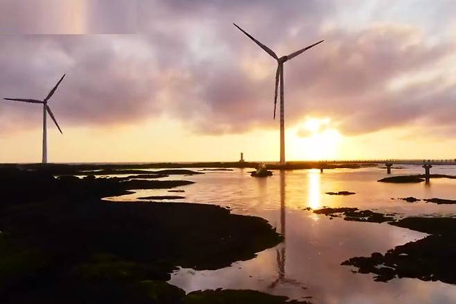 서쪽 풍력발전기 배경을 바라보며 바다 위를 걸을 수 있는 곳입니다.